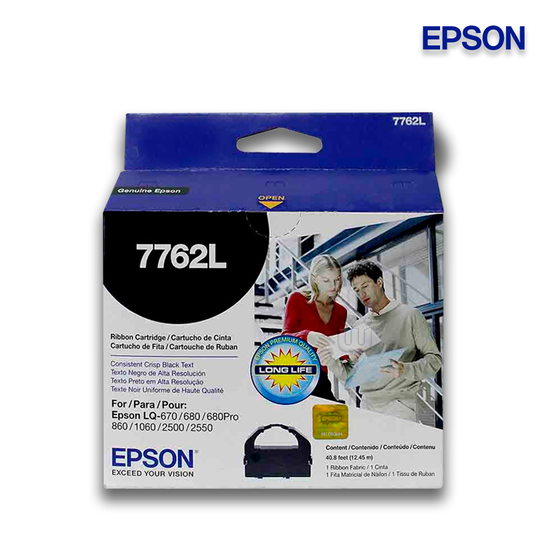 Los cartuchos de Cinta EPSON 7762L Negro, cuentan con altos estándares de calidad de impresión y al mejor precio del mercado, recuerda que una cinta que se encuentra en venta de Cinta EPSON original cuentan con una medida y rollo de cinta para la cantidad de impresión que indica cada producto.